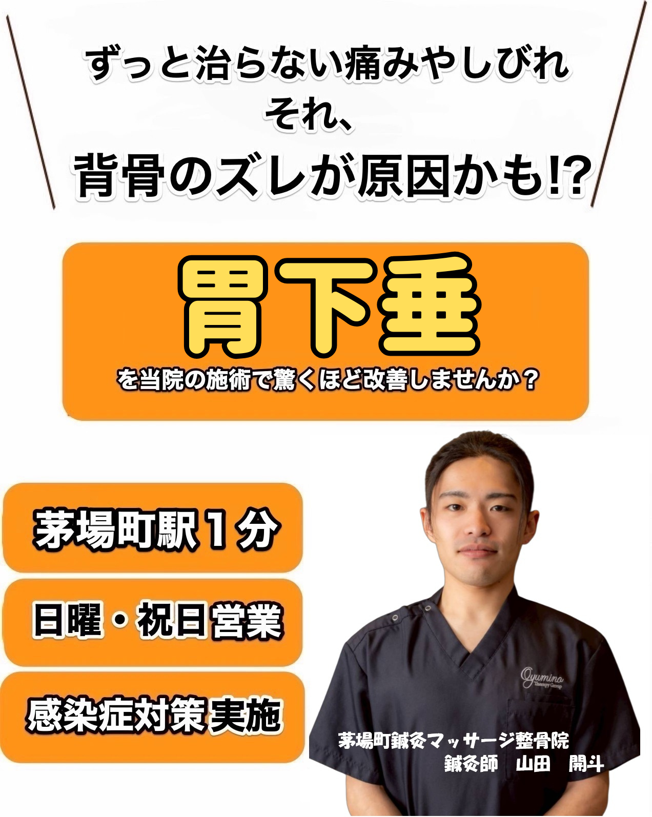 胃の機能が低下すると、消化不良でムカムカしたり本来の位置がキープできなくなり下がってしまいます。